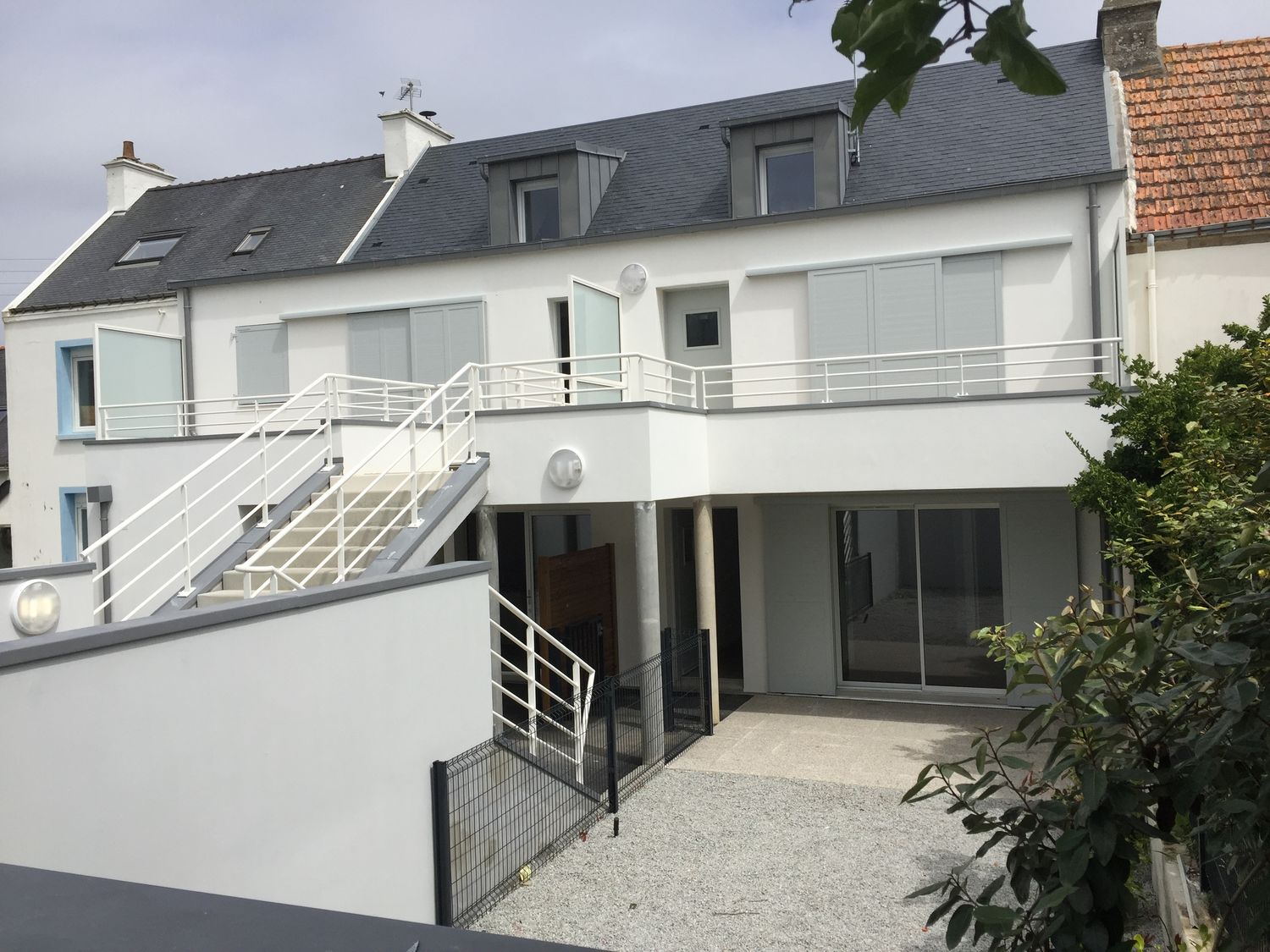L’esprit bord de mer est également très présent par les volets battants et coulissants mais aussi par les teintes en camaïeu gris des ardoises, du zinc et de la peinture des ouvertures peintes en « gris lumière » qui s’allient avec douceur aux façades blanches du logement collectif architecture.